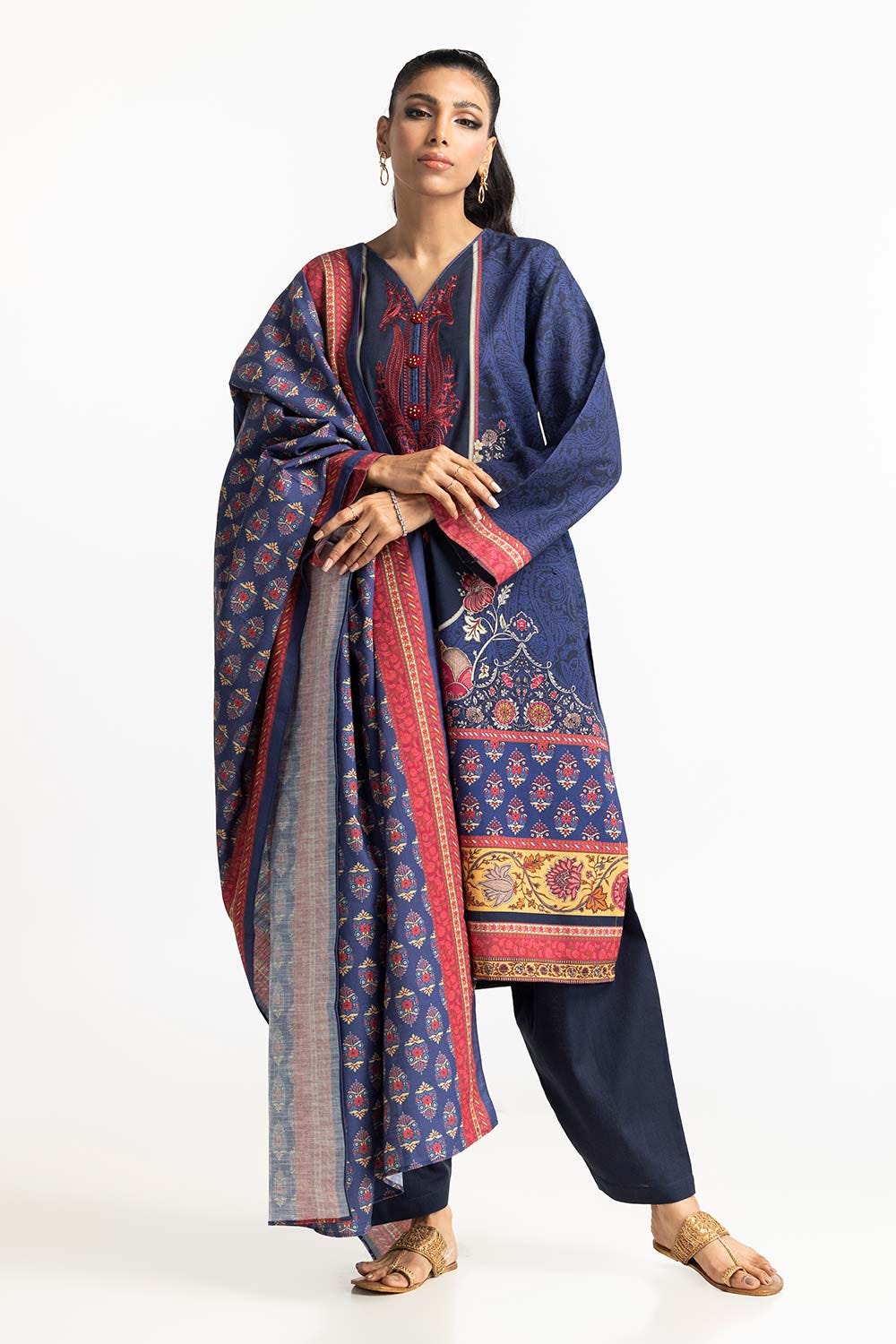 3 Piece Khaddar Printed With Embroidered Suit IUSTKSD-377