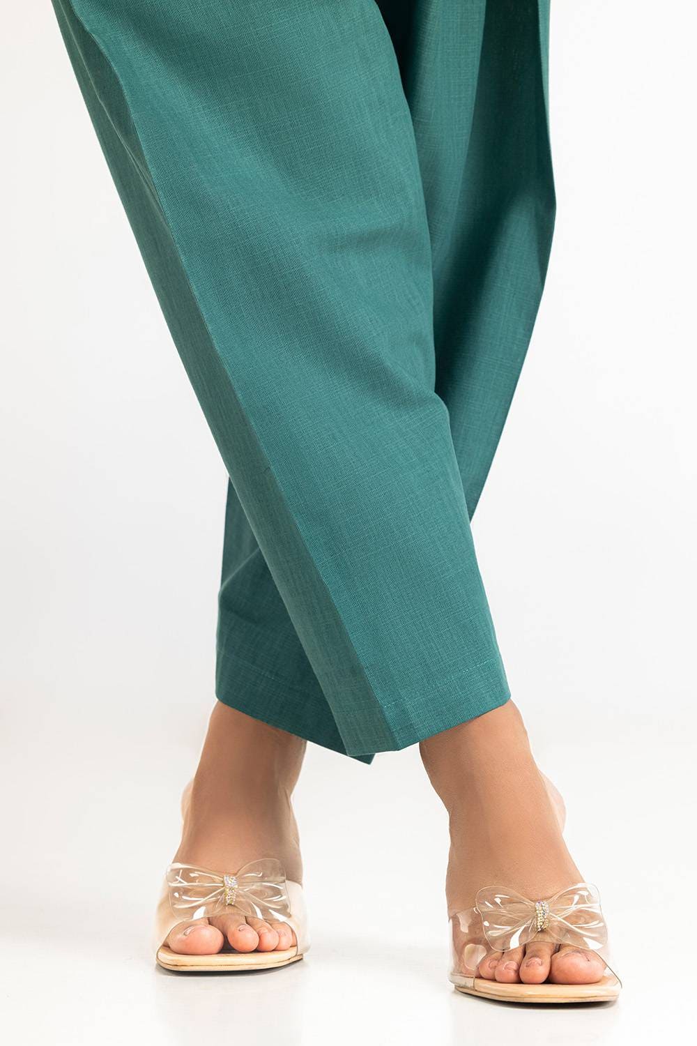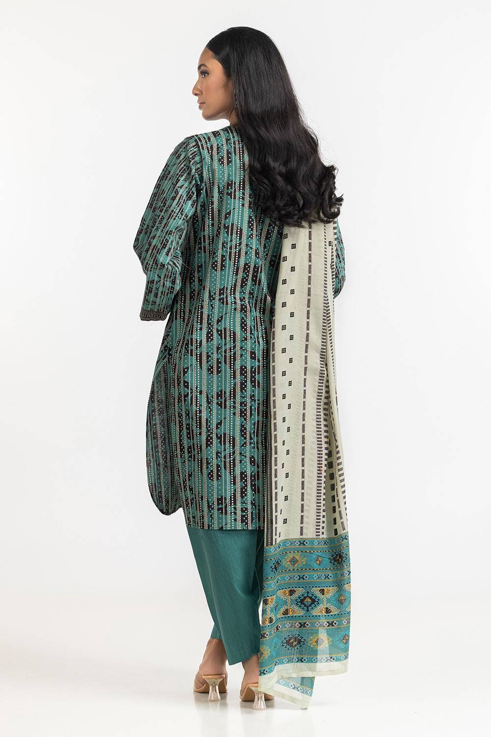 This 3pc green outfit offers a fusion of traditional and contemporary designs. With its intricate embroidery, solid shalwar, and contrasting dupatta, it’s a graceful choice for gatherings or casual outings alike.