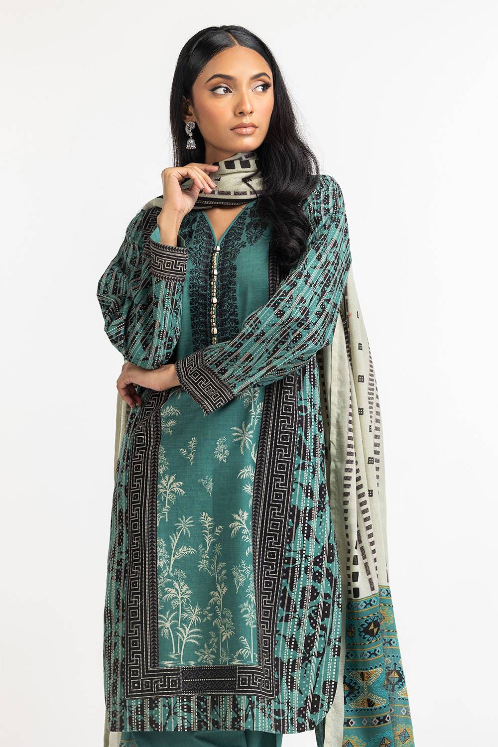 3 Piece Khaddar Printed With Embroidered Suit IUSTKSD-359
