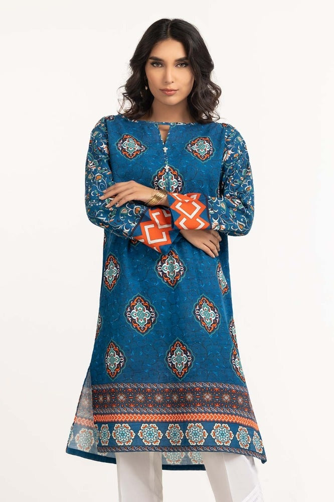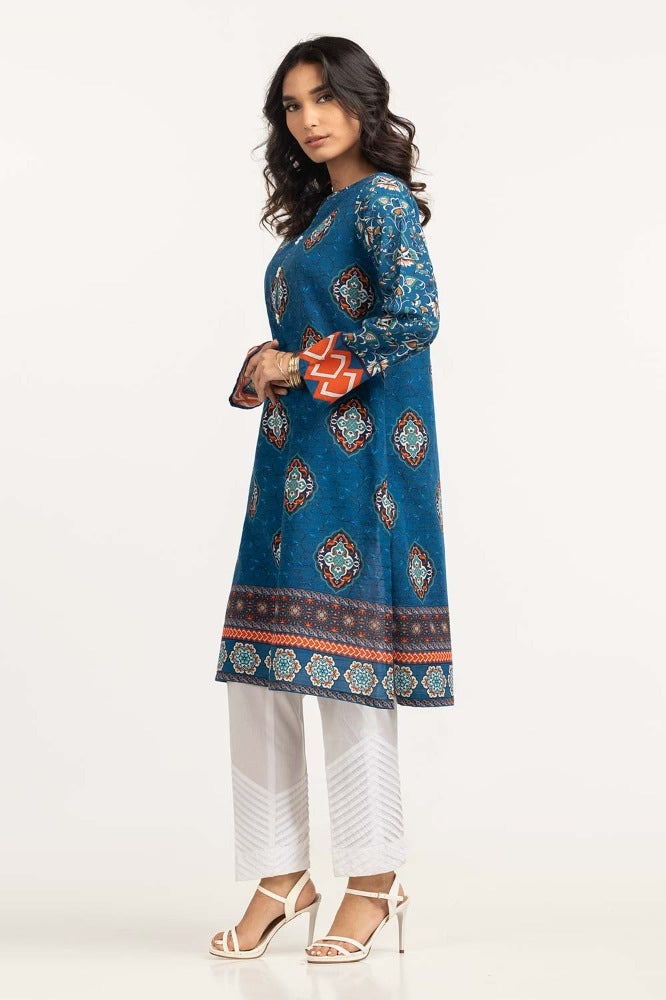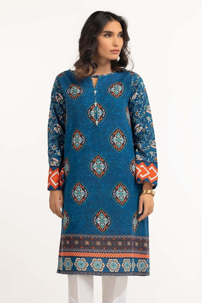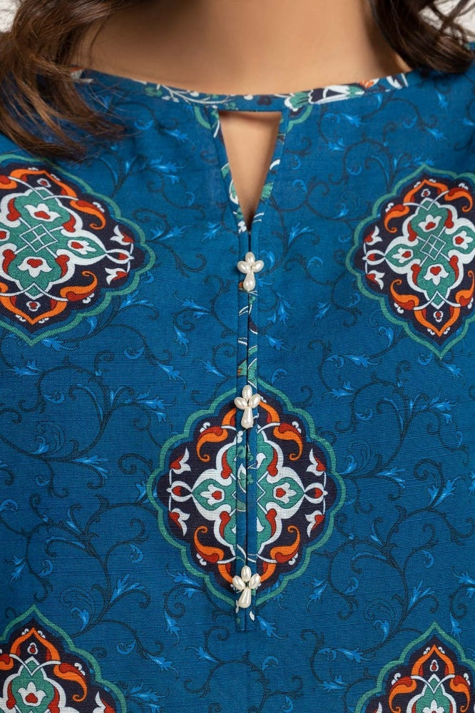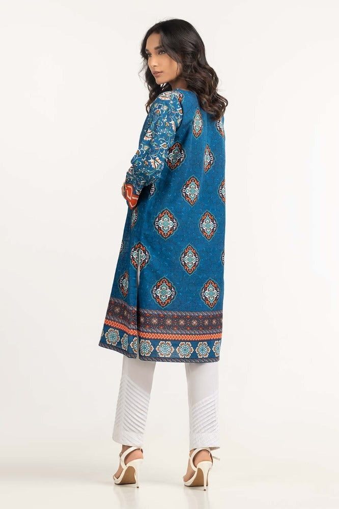 Ready to wear Digital print khaddar shirt with a round neckline and straight sleeves.