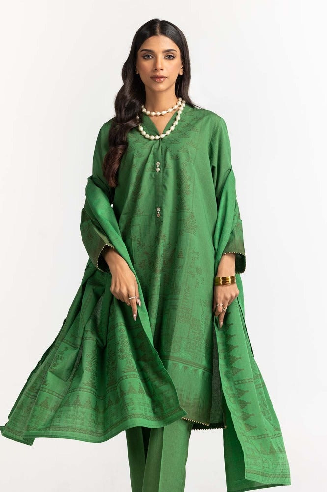 Dyed Chambray Jacquard Shirt Dupatta Chambray Trouser KJP-43189