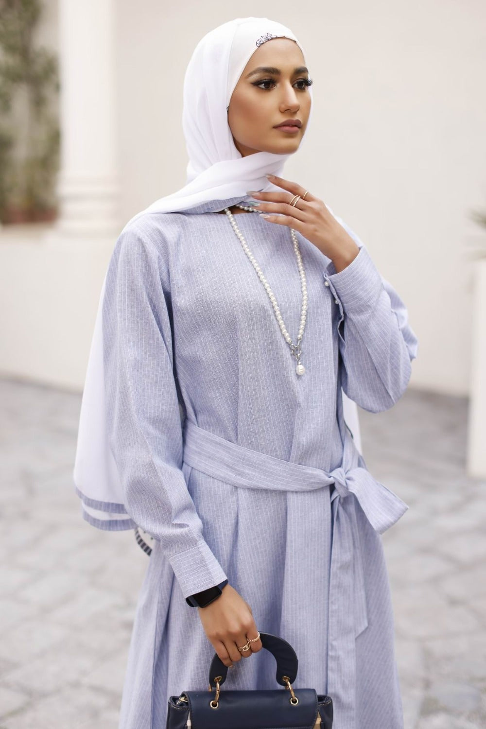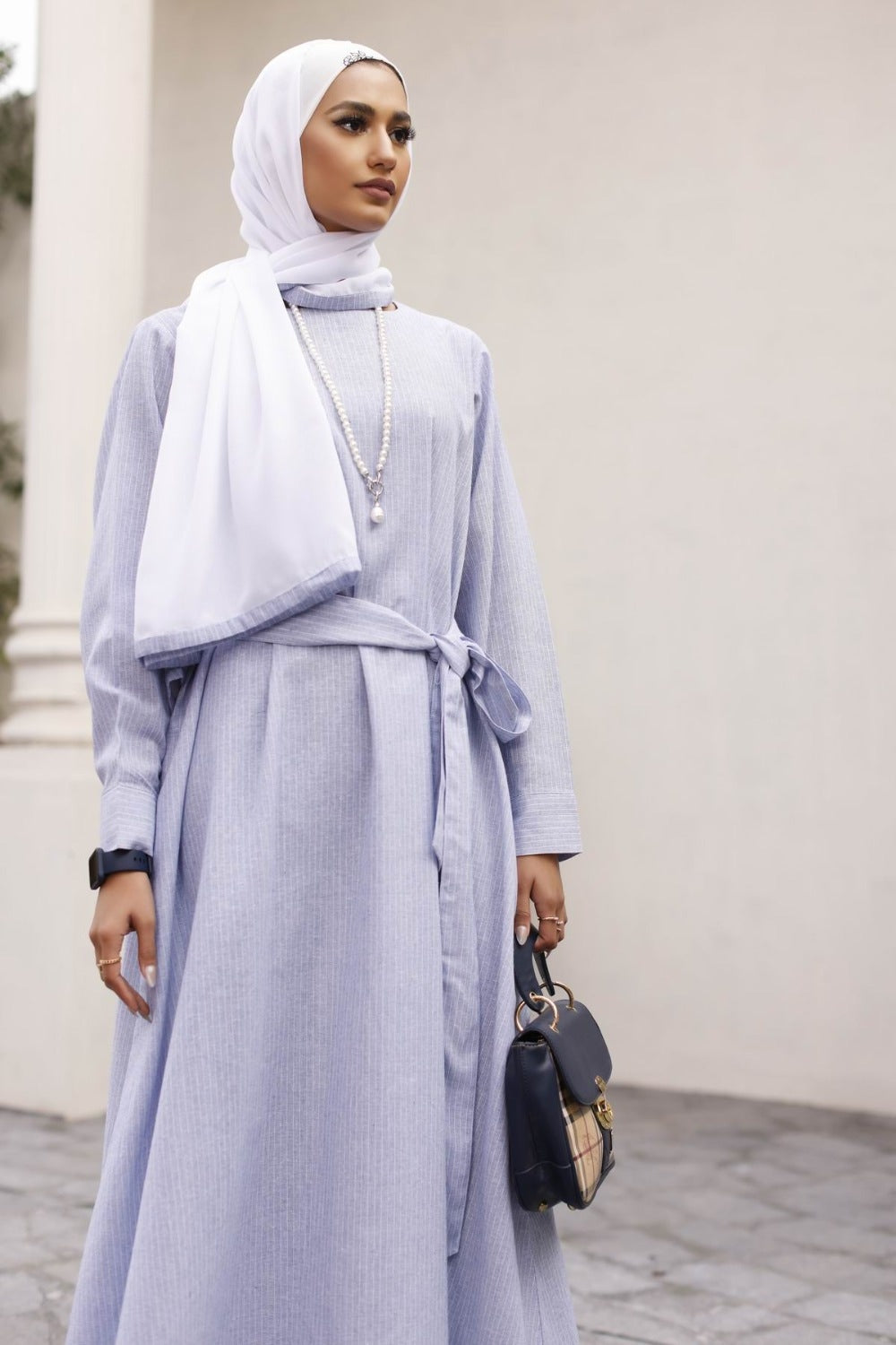 Nisa Stripes Abaya With Dyed Scarf.