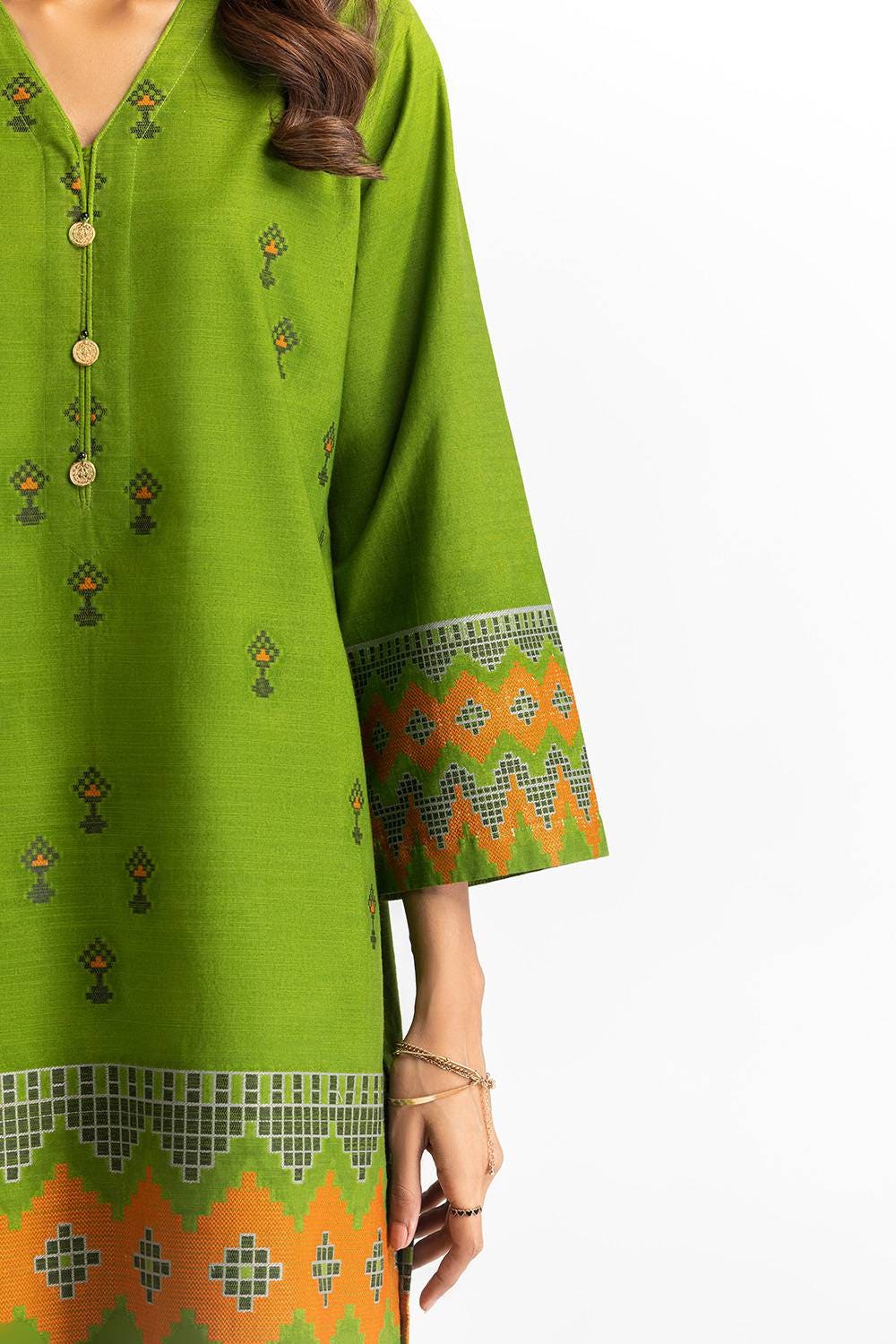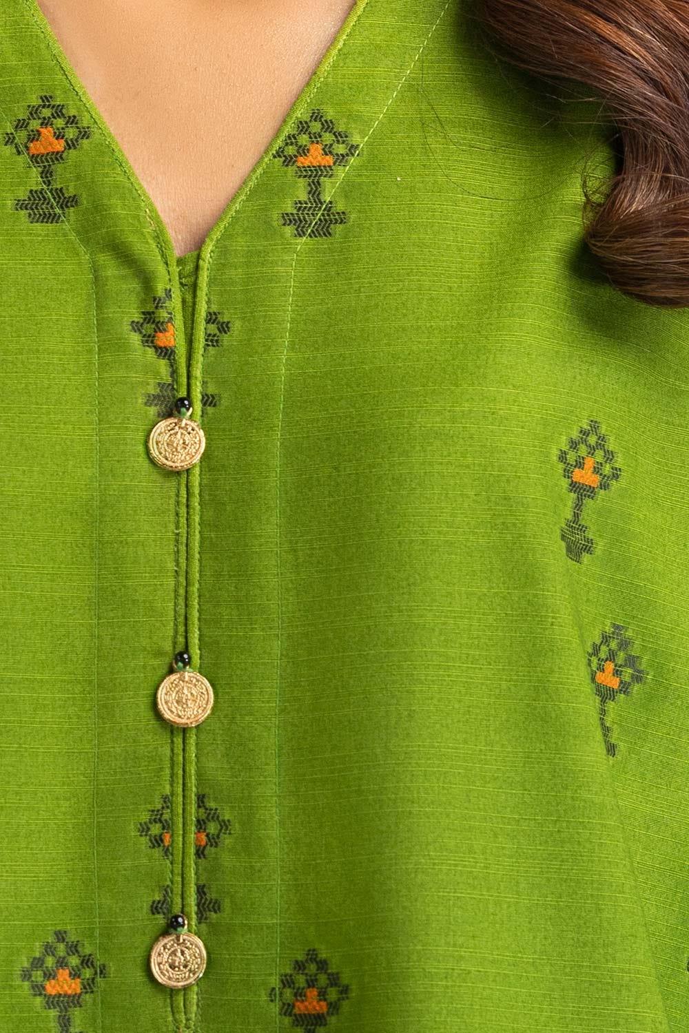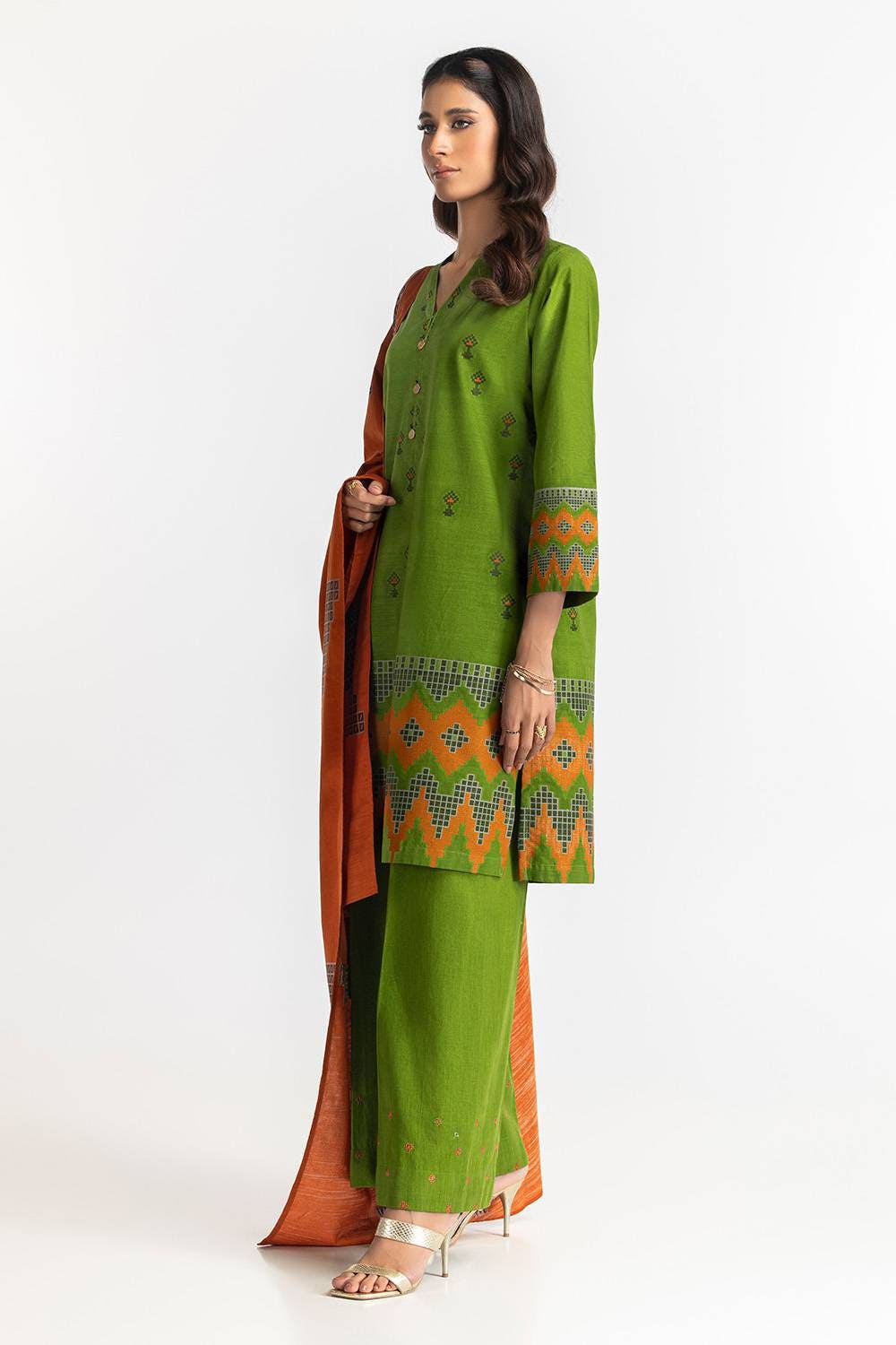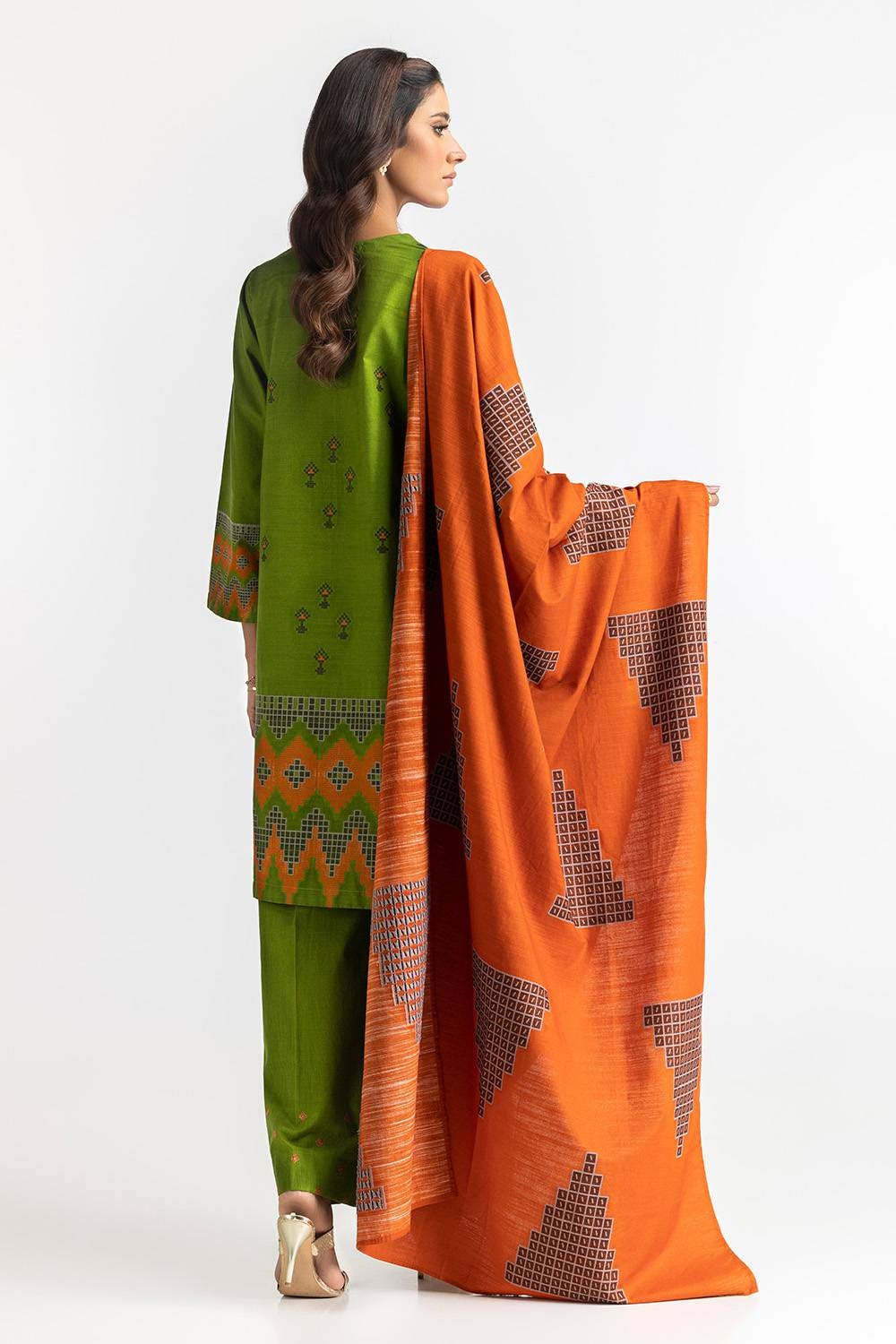 This eye-catching 3PC green and orange geometric outfit is perfect for those who love a bold statement. With its striking pattern and comfortable fit, it’s ideal for casual and semi-formal wear