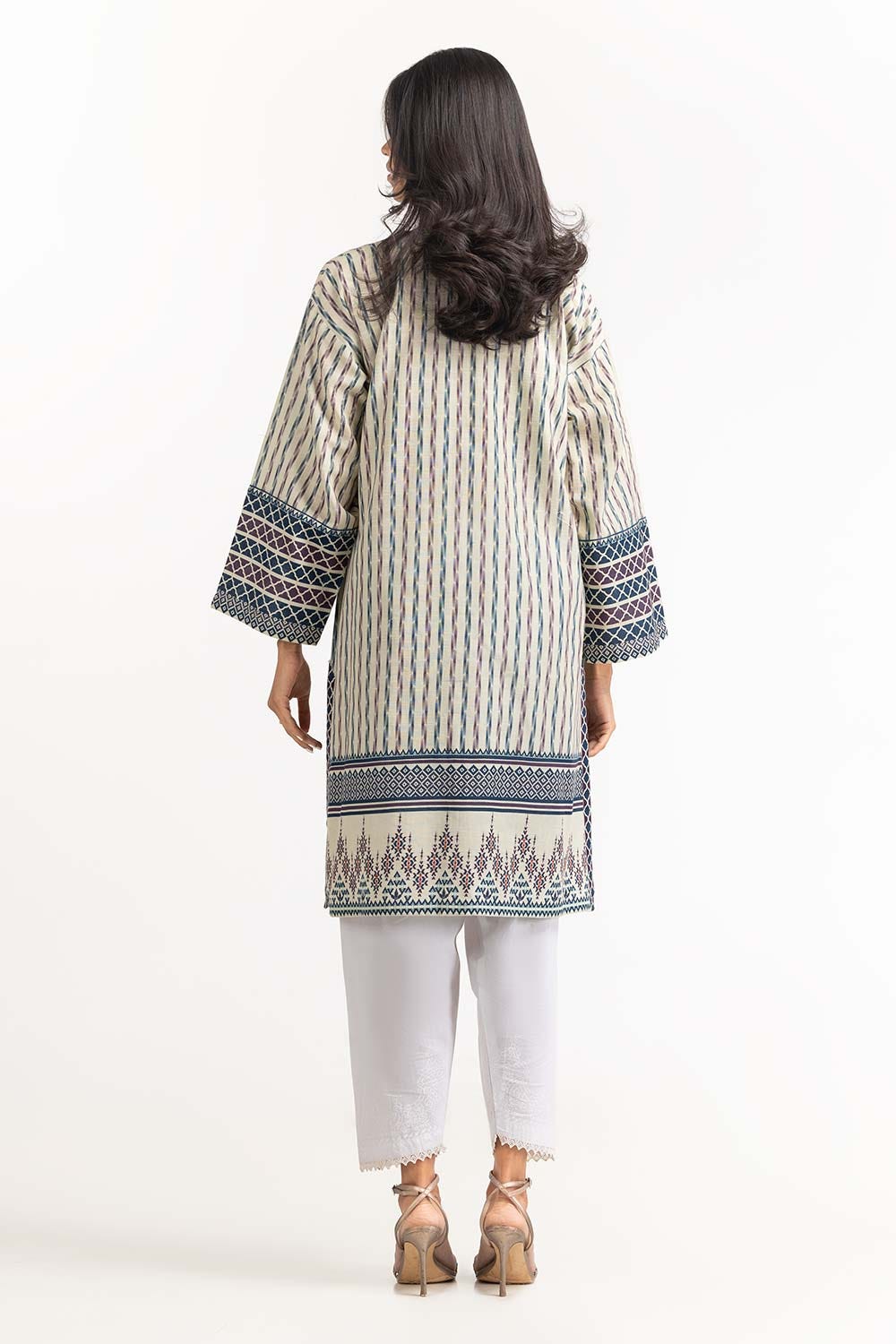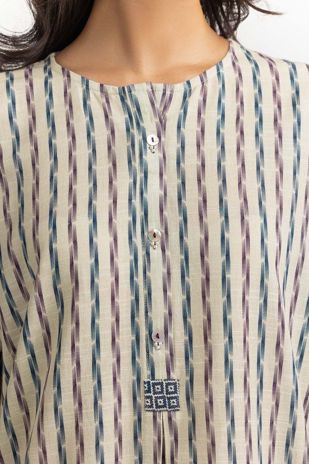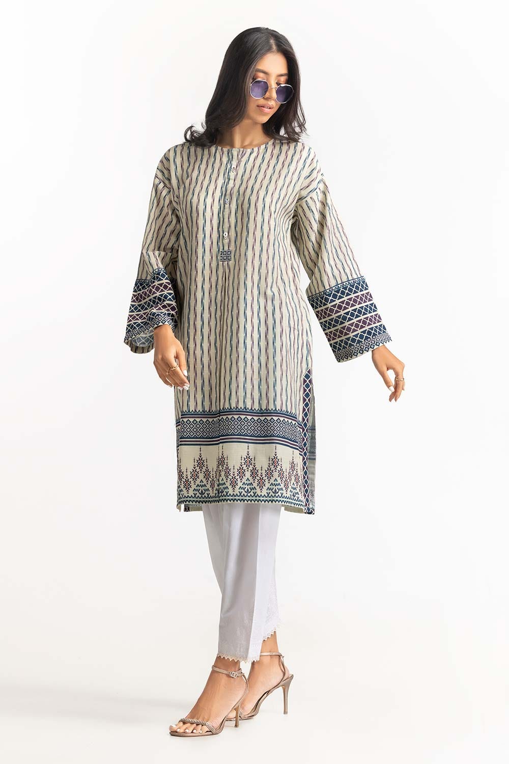 Ready to wear Digital Printed Khaddar Shirt featuring simple round neckline and straight broad sleeves.