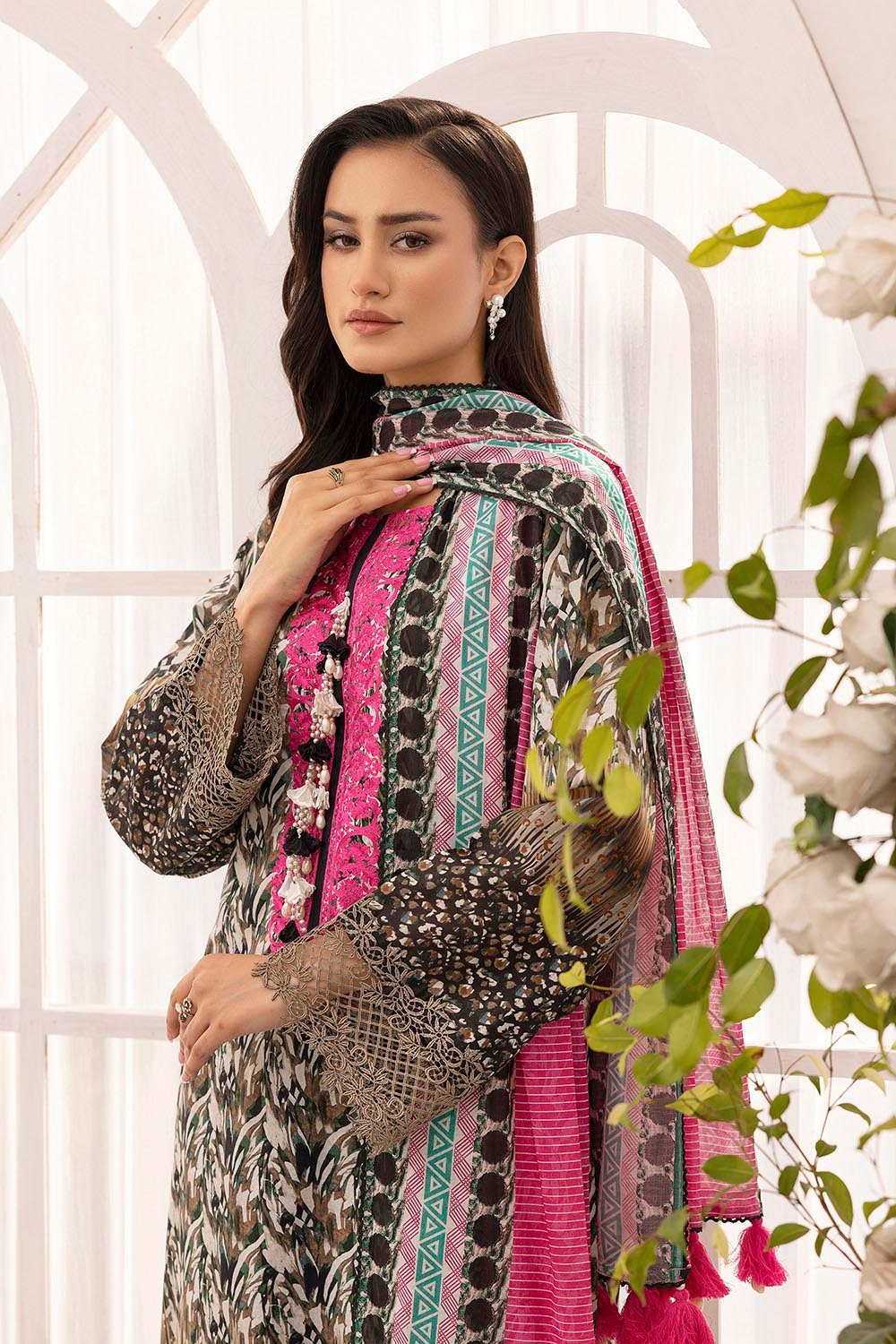 • Embroidered Printed Lawn Shirt Front with Printed Lawn Back & Sleeves - 1.75 Meters