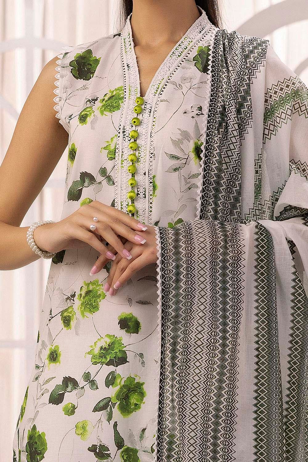 3 Piece Unstitched Schiffli Embroidered Lawn Suit with Printed Lawn Dupatta CL-52481