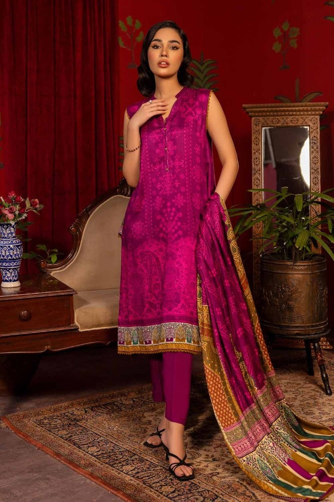 3 Piece Digital Printed Pashmina Unstitched Suit with Digital Printed Pashmina Shawl AP-32008