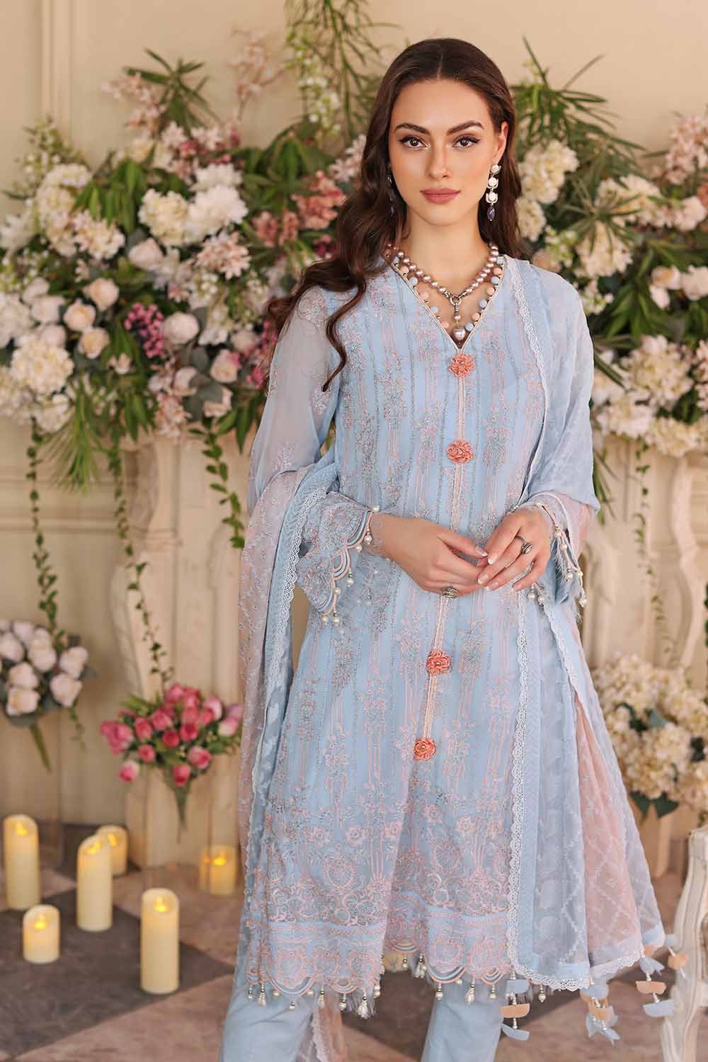 • Embroidered Chiffon Front, Back & Sleeves – 4.28 Meter