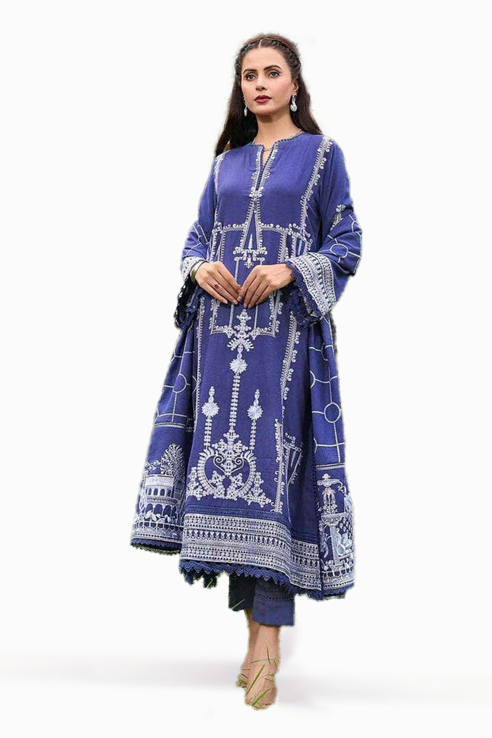 3 Piece Embroidered Dhanak Unstitched Suit DH-32001