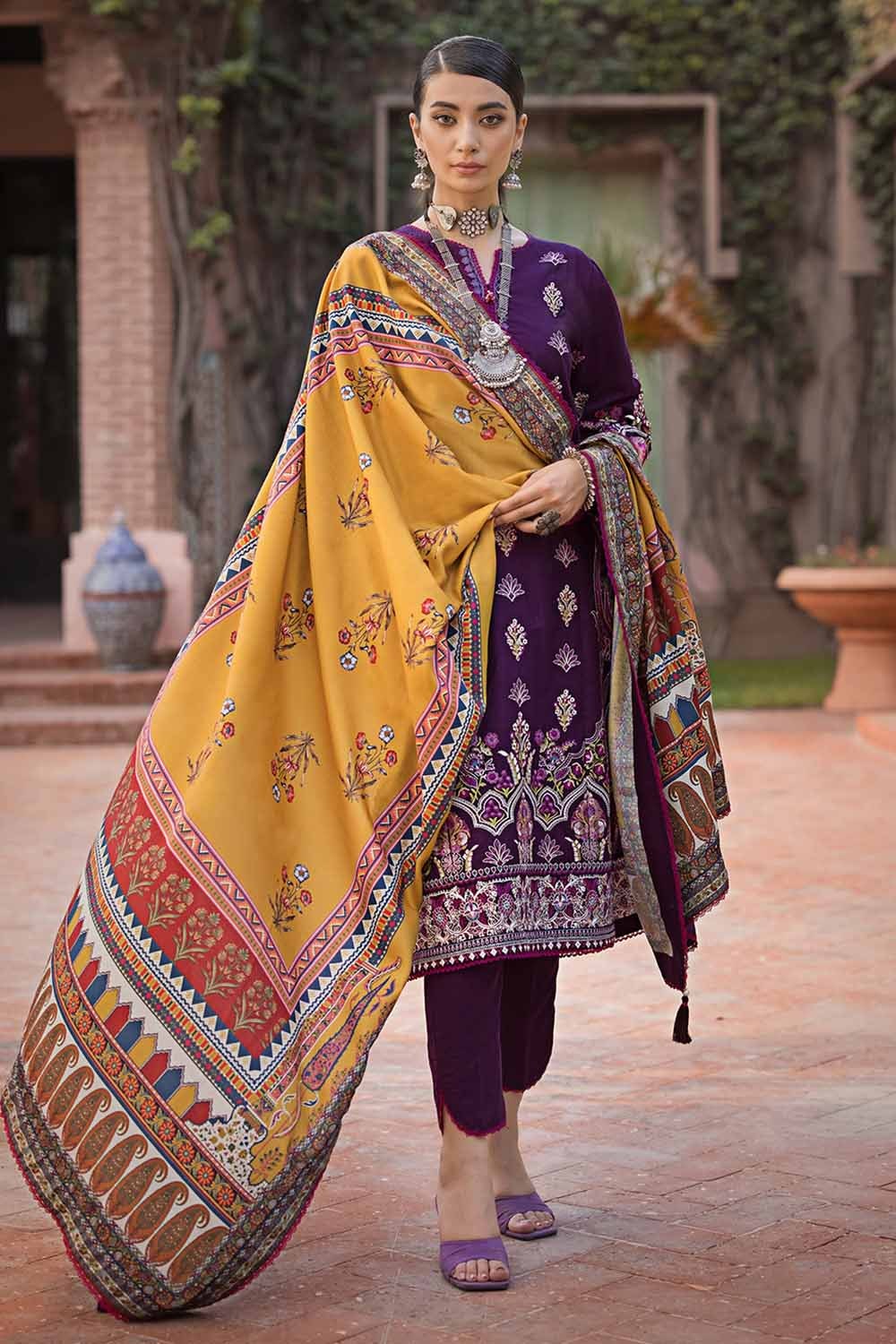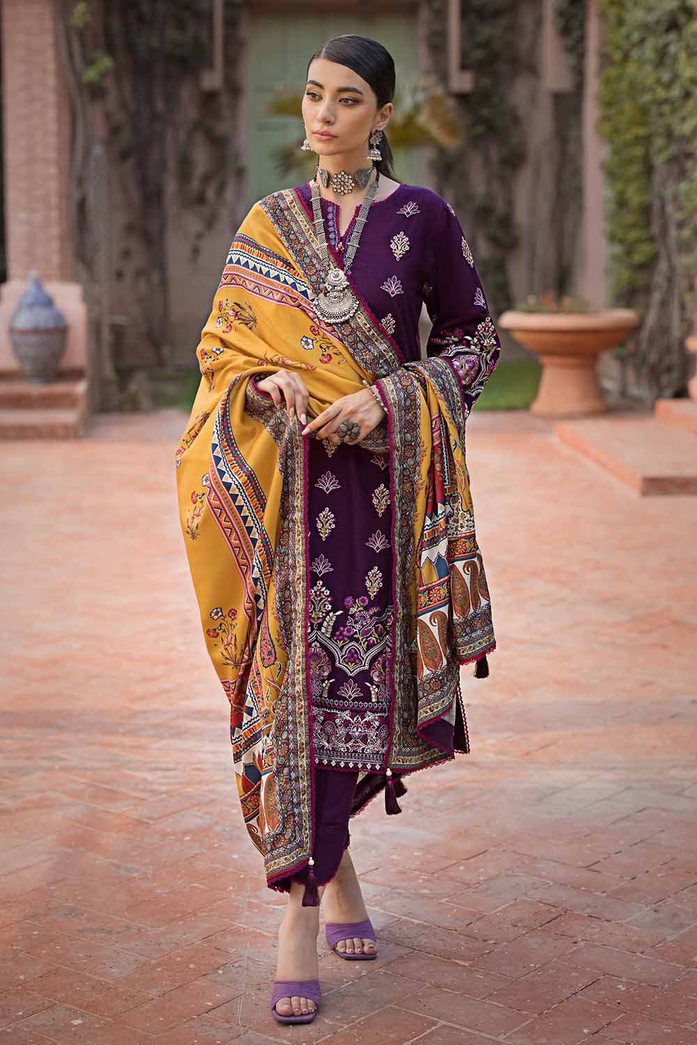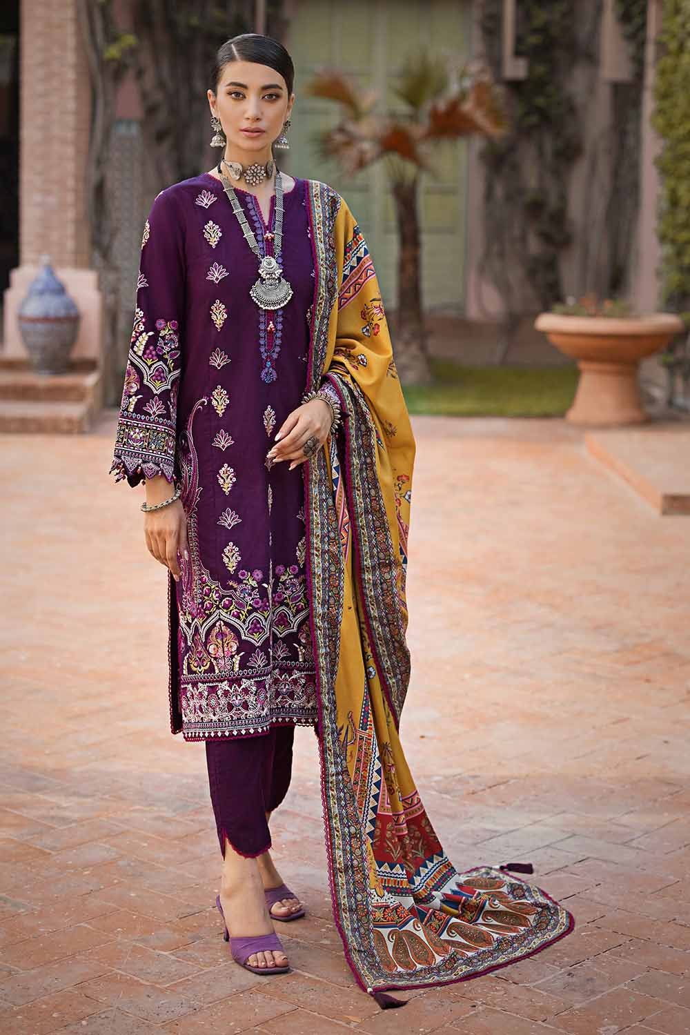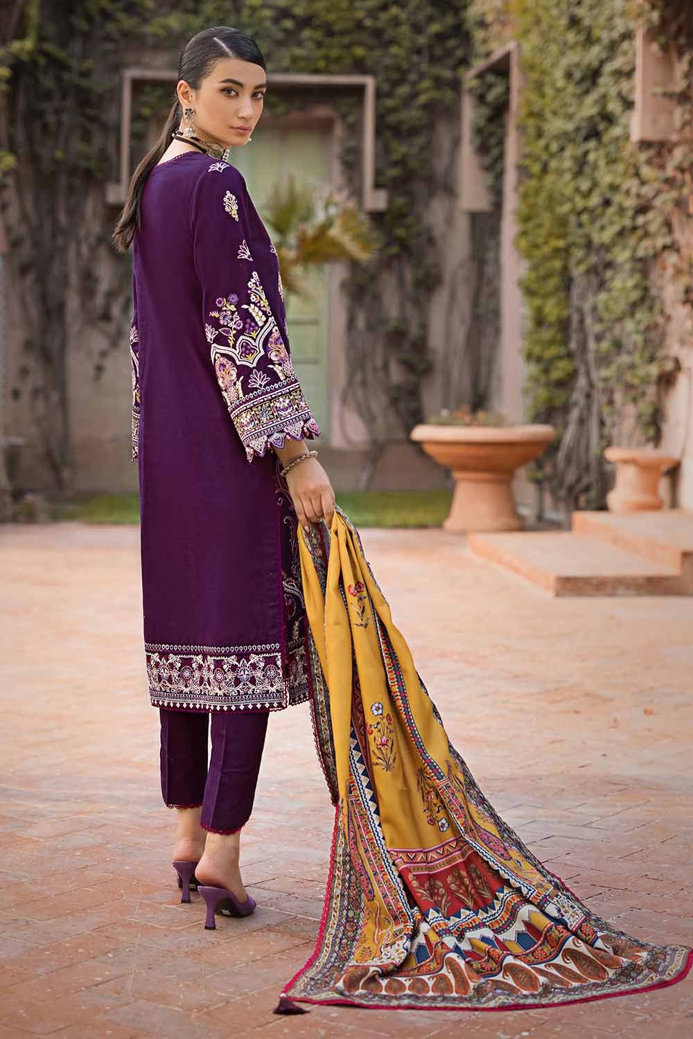 • Embroidered Khaddar Shirt Front Center Panel, Side Panels & Sleeves with Embroidered Border For Front. Dyed Back – 3.19 meters
