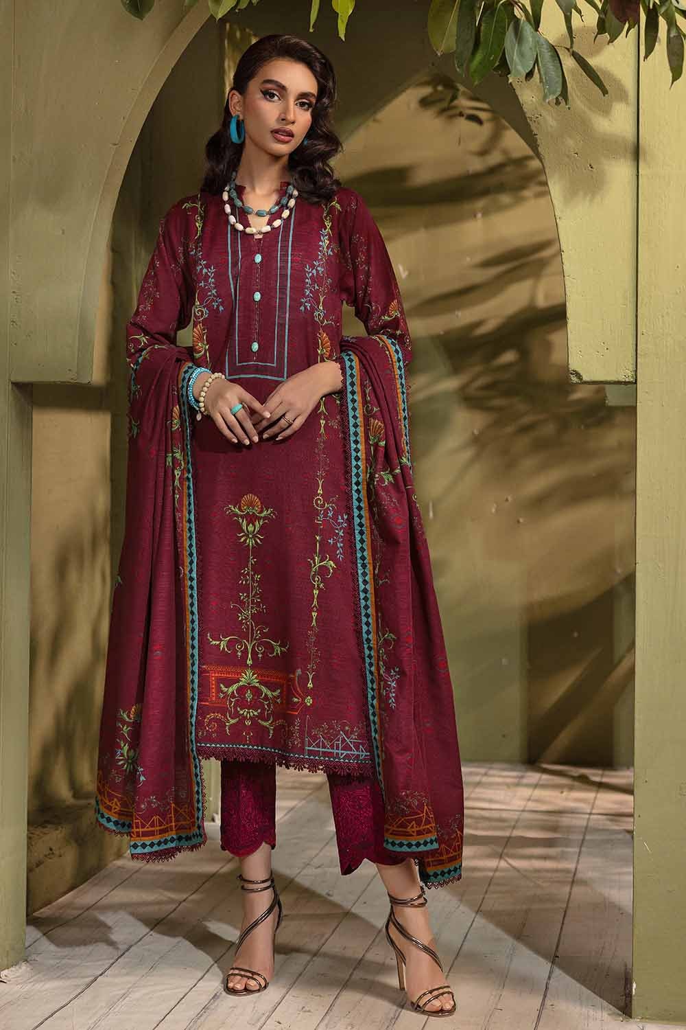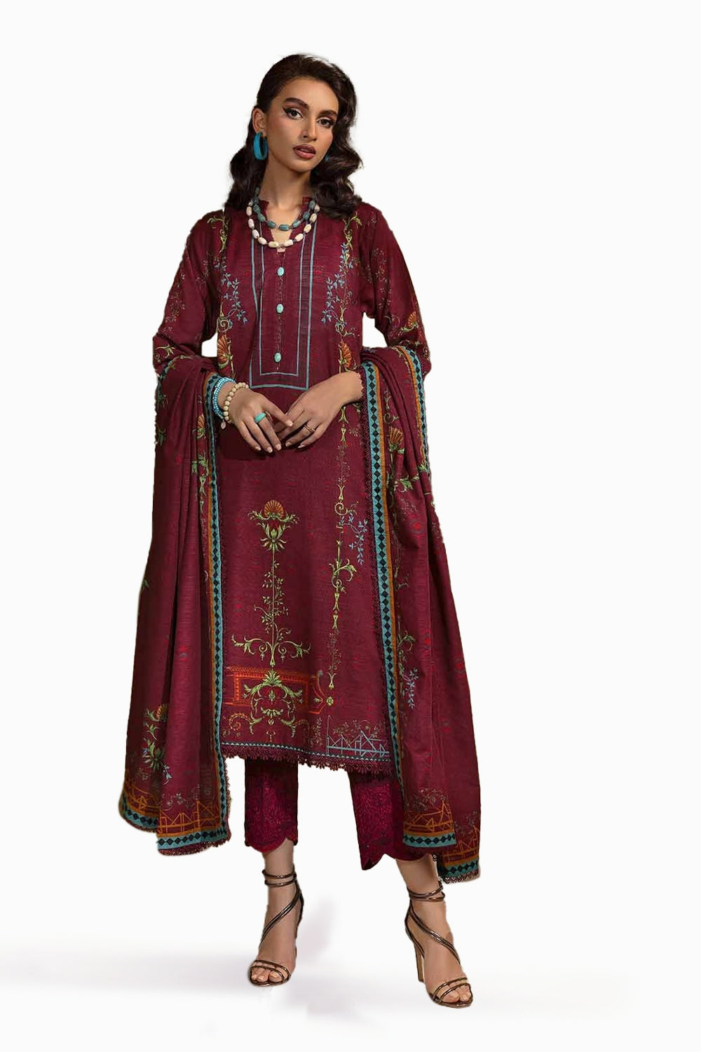 3 Piece Embroidered Khaddar Unstitched Suit with Embroidered Border  K-32029