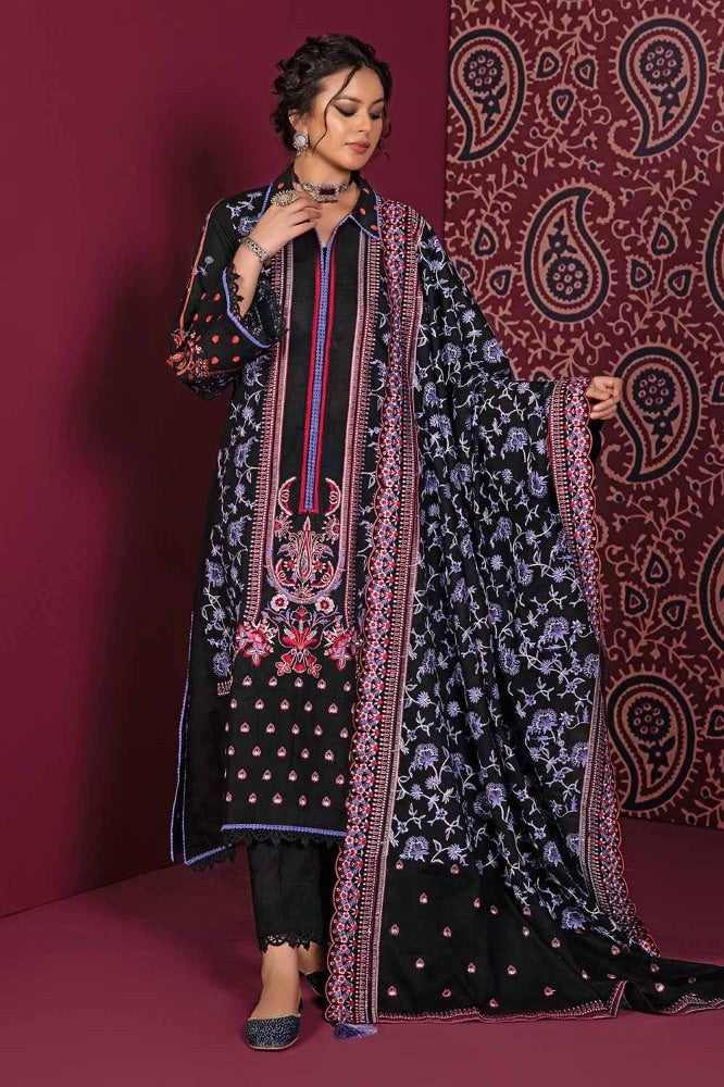 3 Piece Embroidered Khaddar Unstitched Suit with Embroidered Khaddar Dupatta K-32030