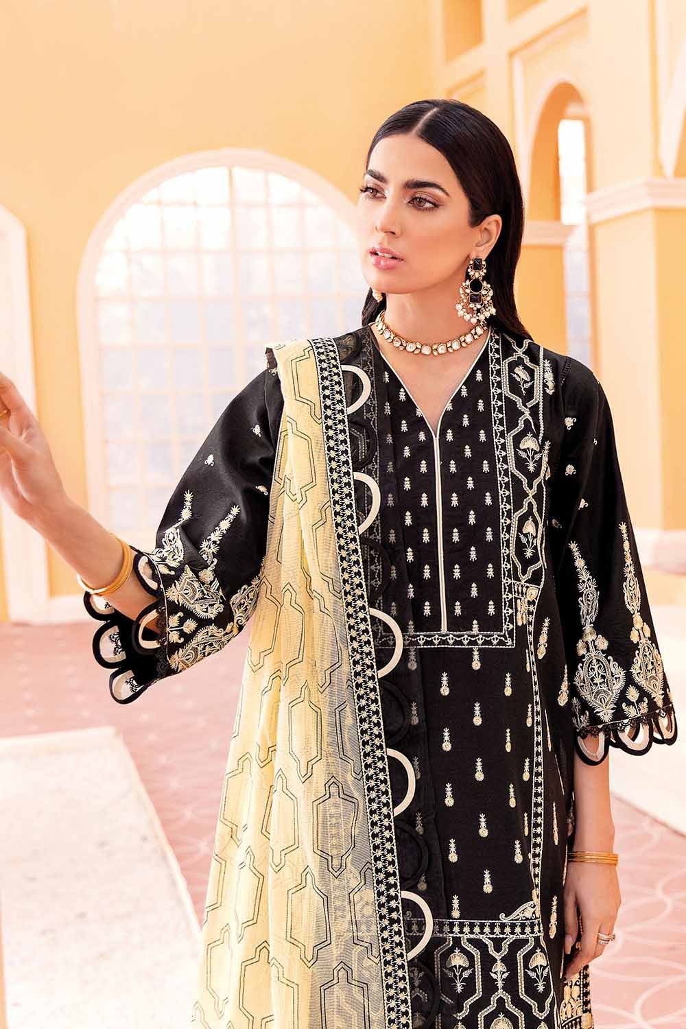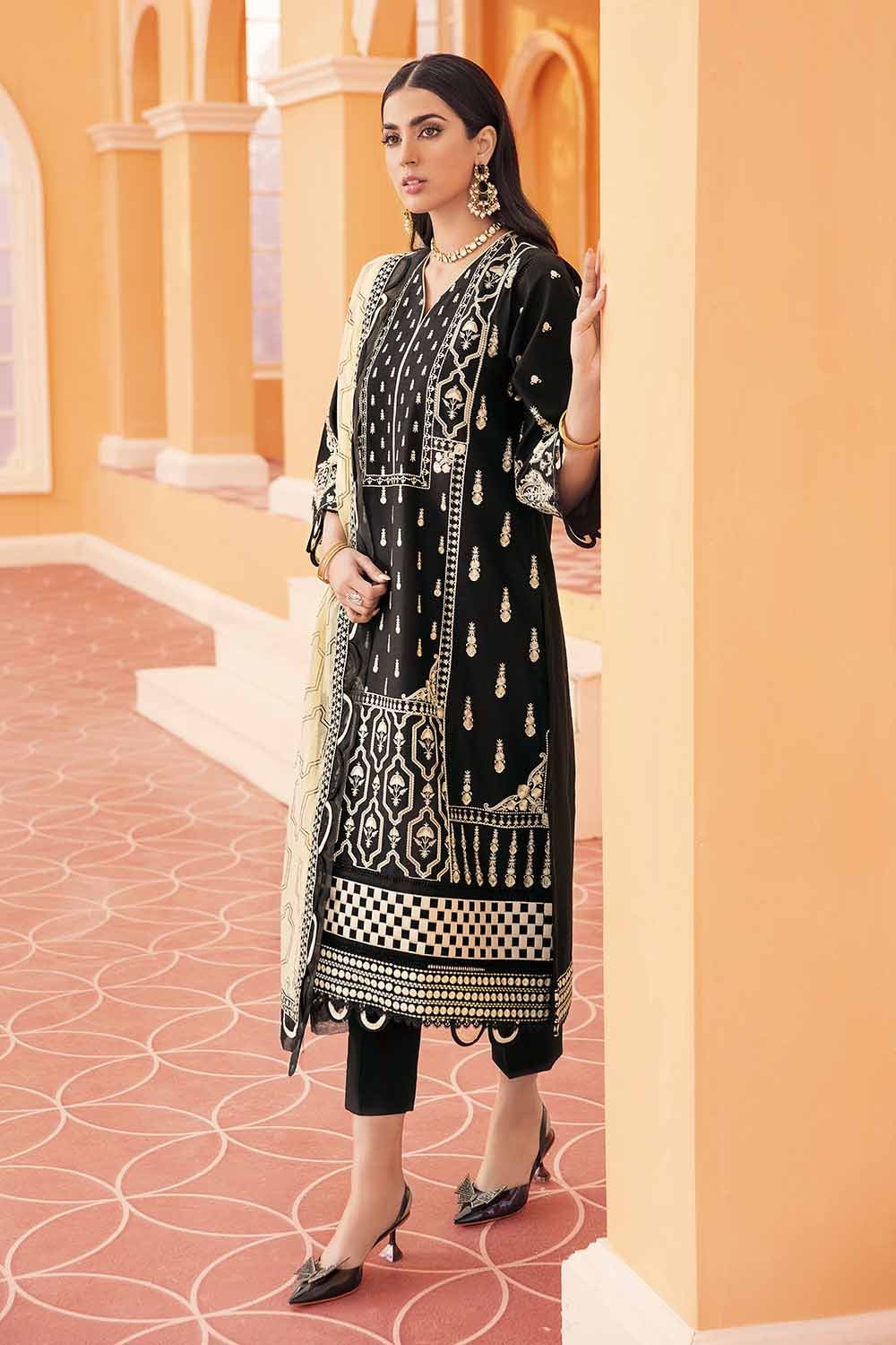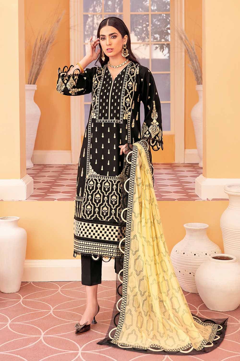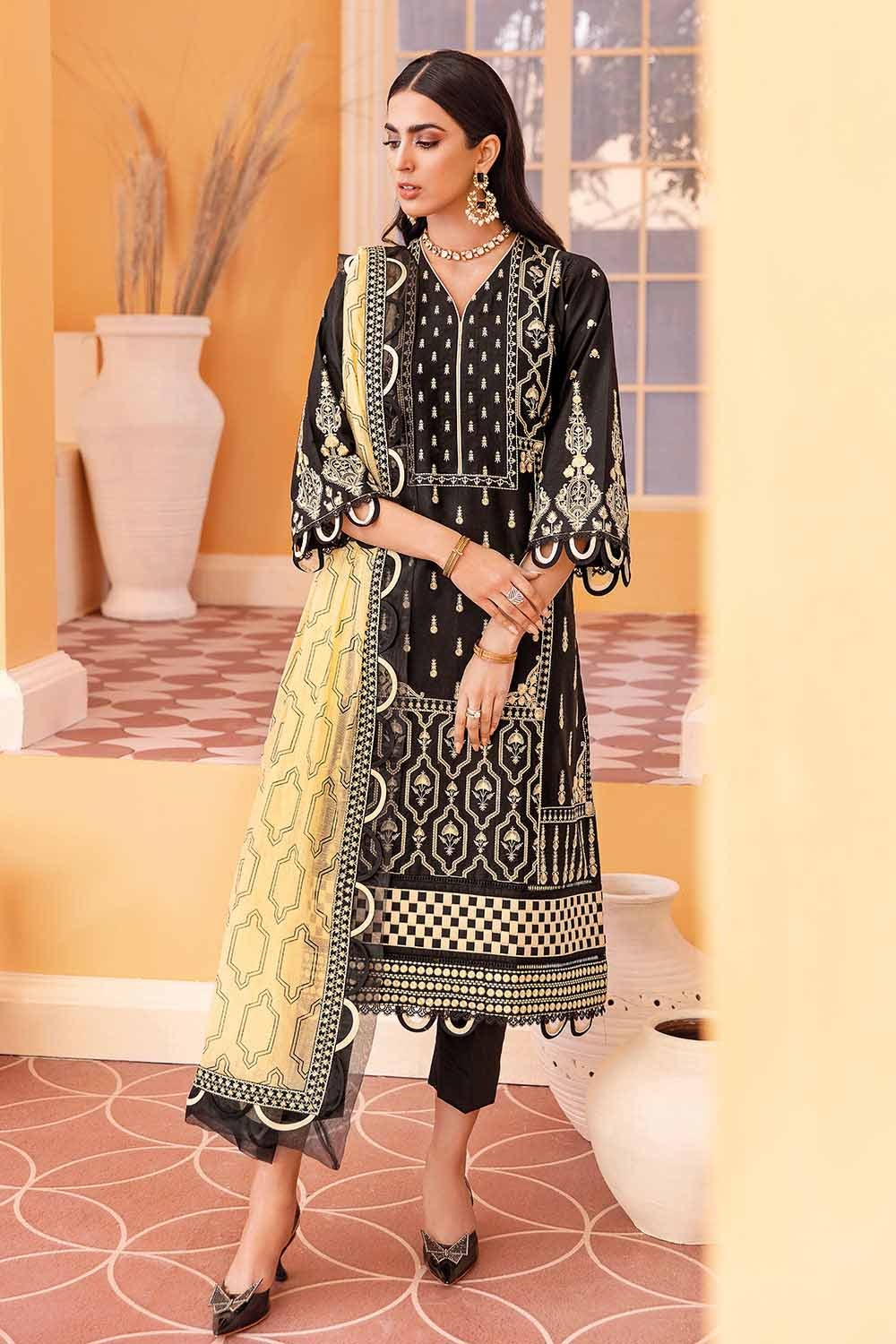 3 Piece Embroidered Lawn Unstitched Suit With Embroidered Net Dupatta PM-22004