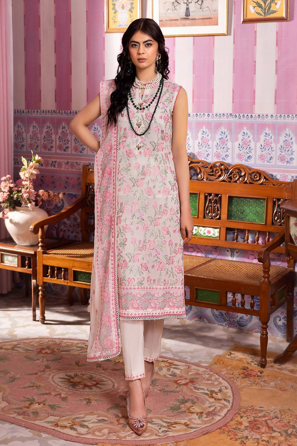 3 Piece Embroidered Swiss Voile Unstitched Suit with Embroidered Chiffon Dupatta and Inner LSV-42011
