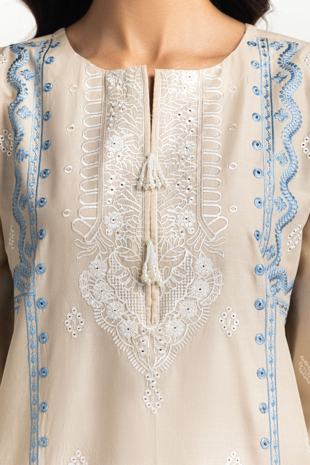 Details: Embroidered Shirt with Round – Neckline and Tassels