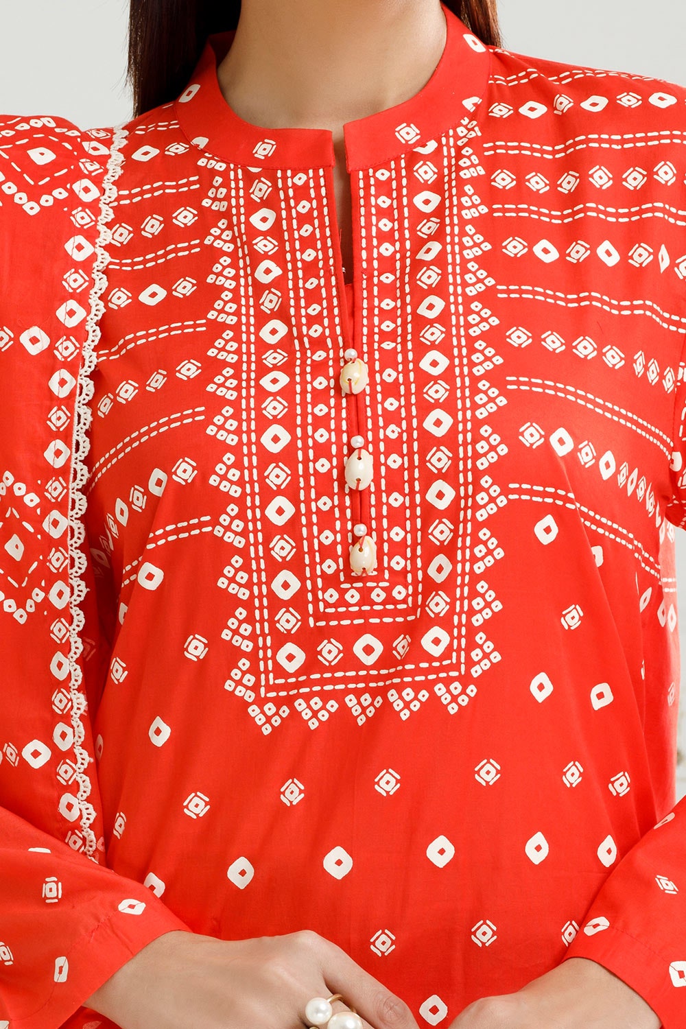 Work Detail: Printed Shirt and Dupatta with Dyed Trouser