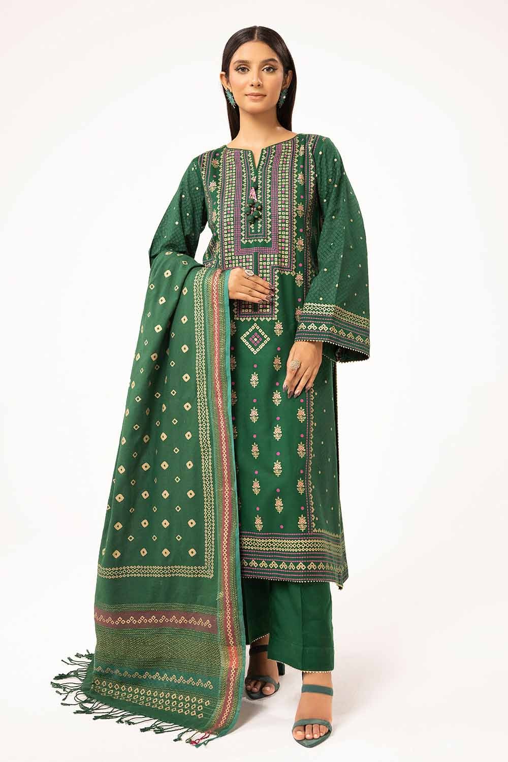 3 Piece Unstitched Gold and Lacquer Printed Suit with Gold and Lacquer Printed Acrylic Dupatta AP-42028
