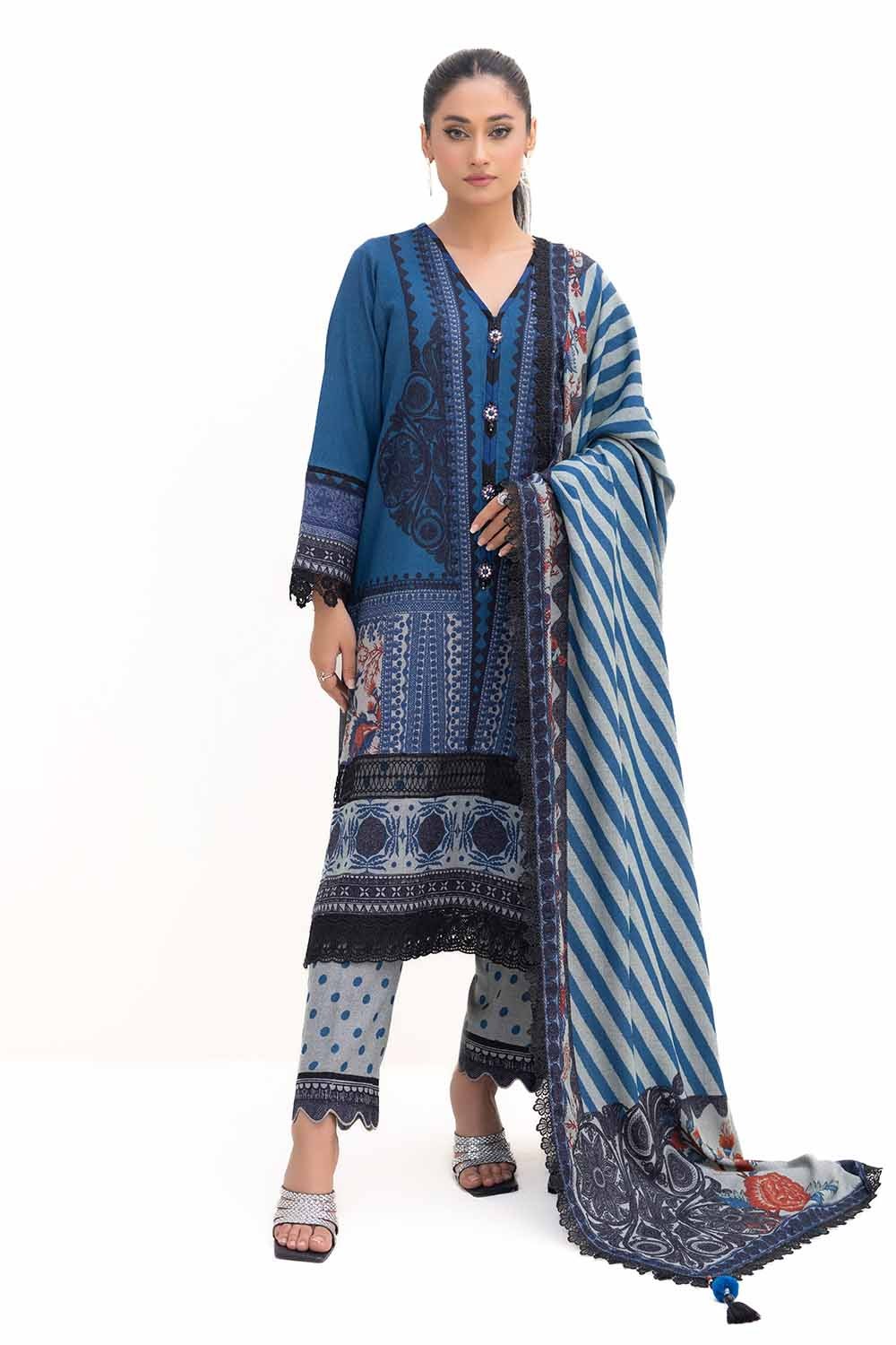 3 Piece Unstitched Printed Dhanak Suit DH-42009